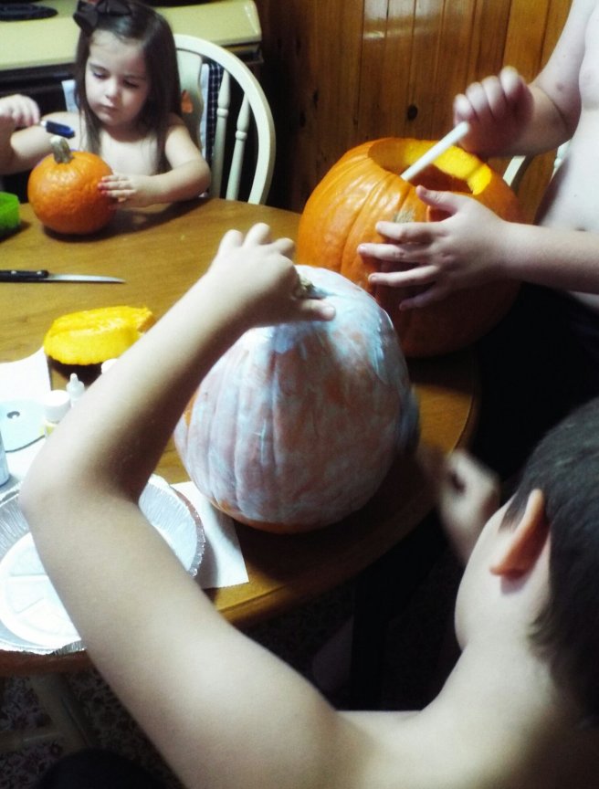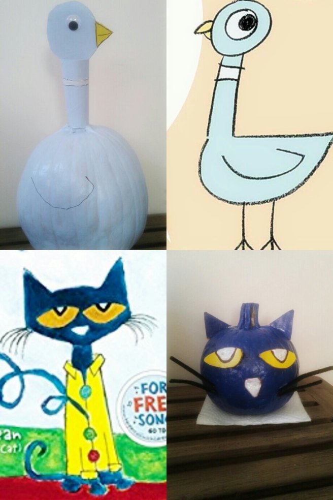 Koby wanted his pumpkin to be Little Pigeon and Klara wanted to paint her pumpkin as Pete the Cat