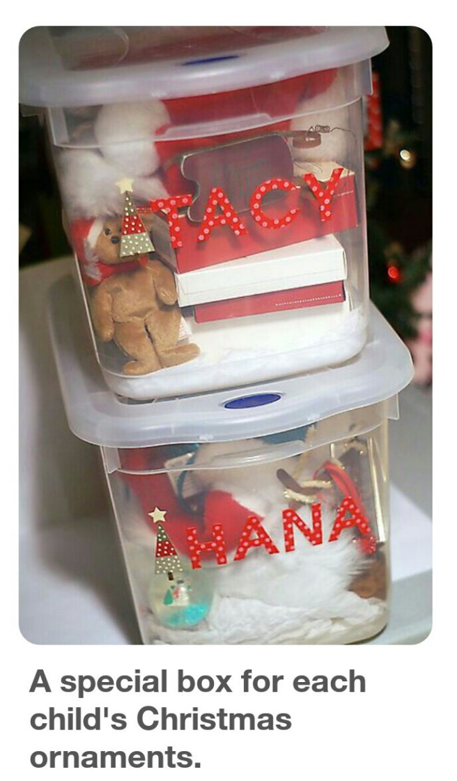 I also found this idea when scrolling through Pinterest. Our kids would love having their own ornament box to open (almost like an early gift!) each year.