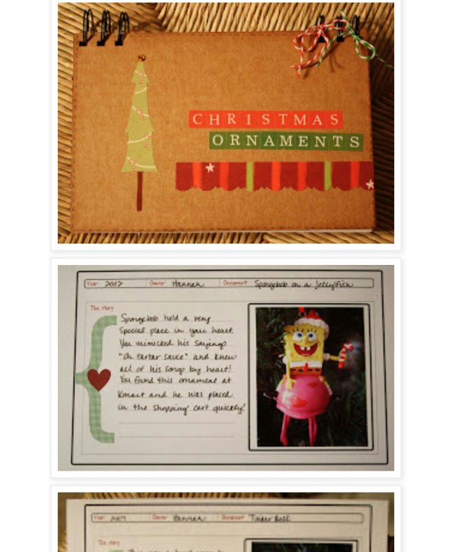 Her family keeps a book of Christmas ornaments and she documents the year it was bought, who it was bought for, and the story behind it. I love this idea!