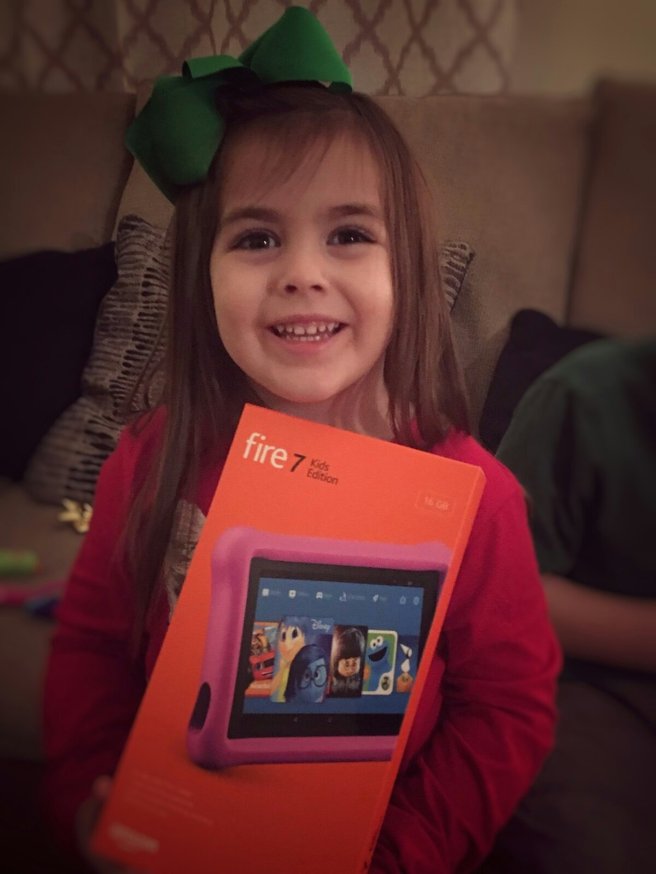 Our daughter, Klara, has so many favorite gifts she got this Christmas. Her fire 7 has been used more than anything else. We took a trip to Maryland to visit my aunt and her family and this gadget kept Klara busy in the car. Her favorite apps are Peppa Pig, Super Why, and YouTube kids.